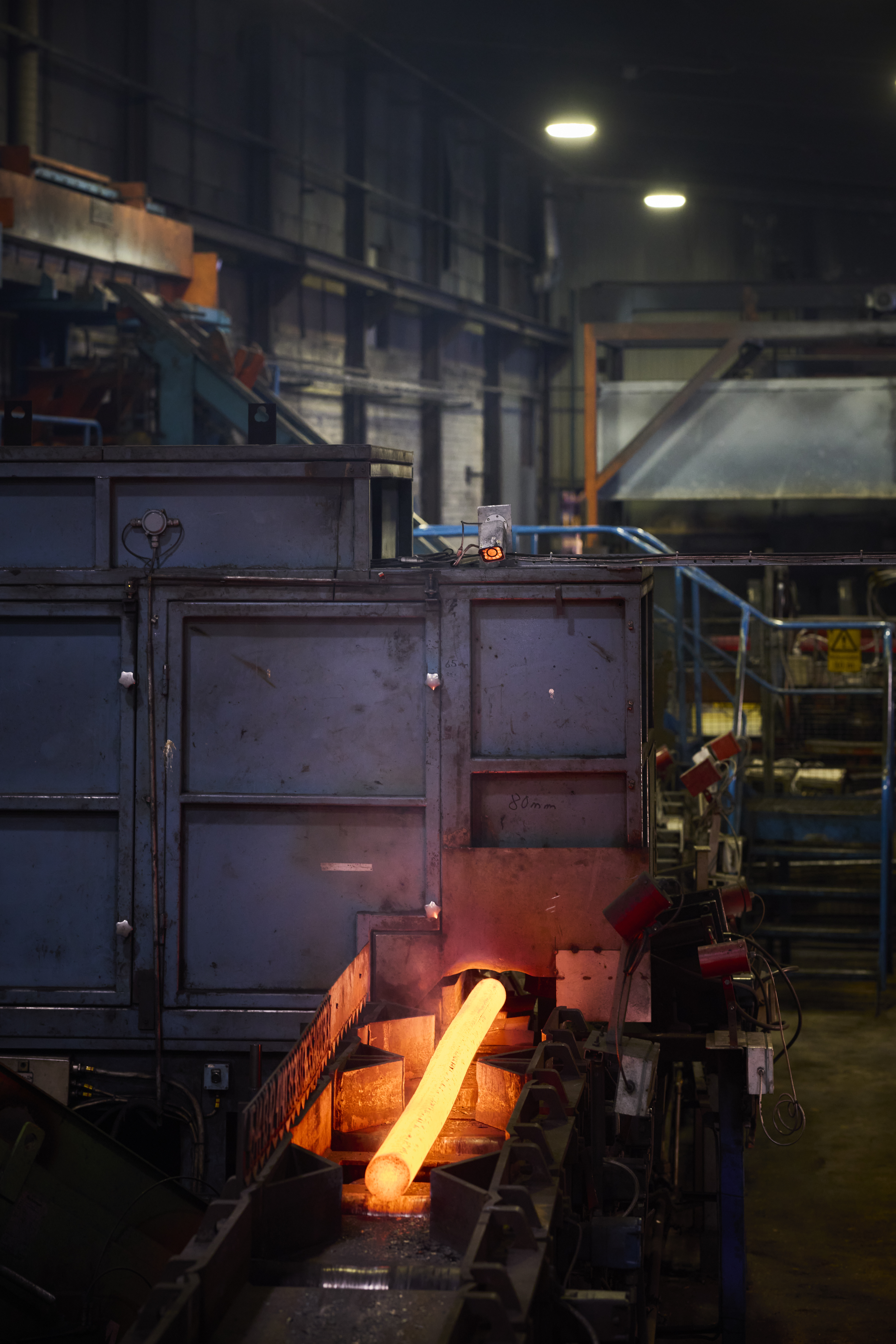 Smidning av stångämne. En smidesmaskin för stång. Ämneslinjen vid Erasteel Kloster AB.