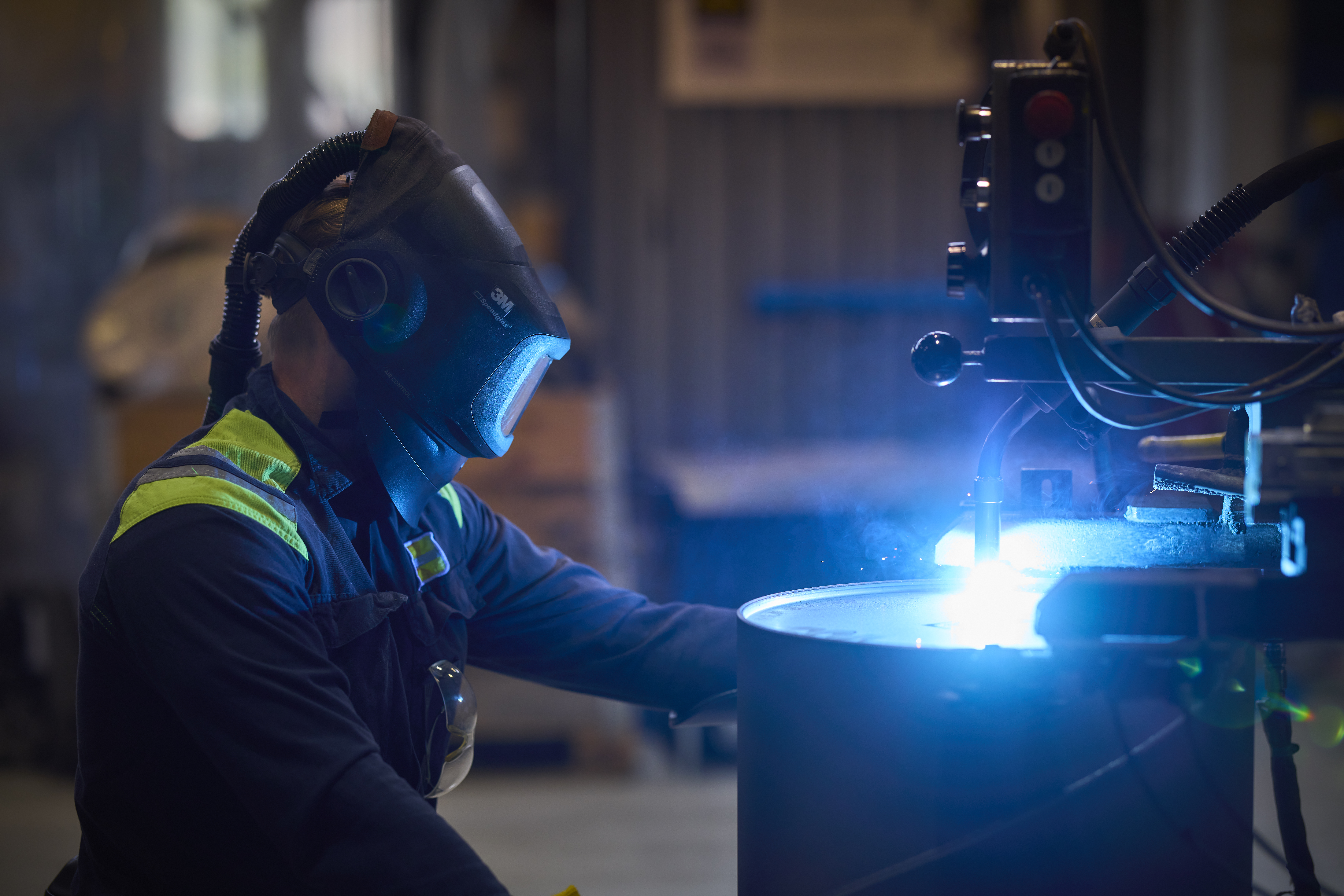 Fredrik Pettersson bereder kapslar för kompaktering av stålpulver. Erasteel Kloster AB.