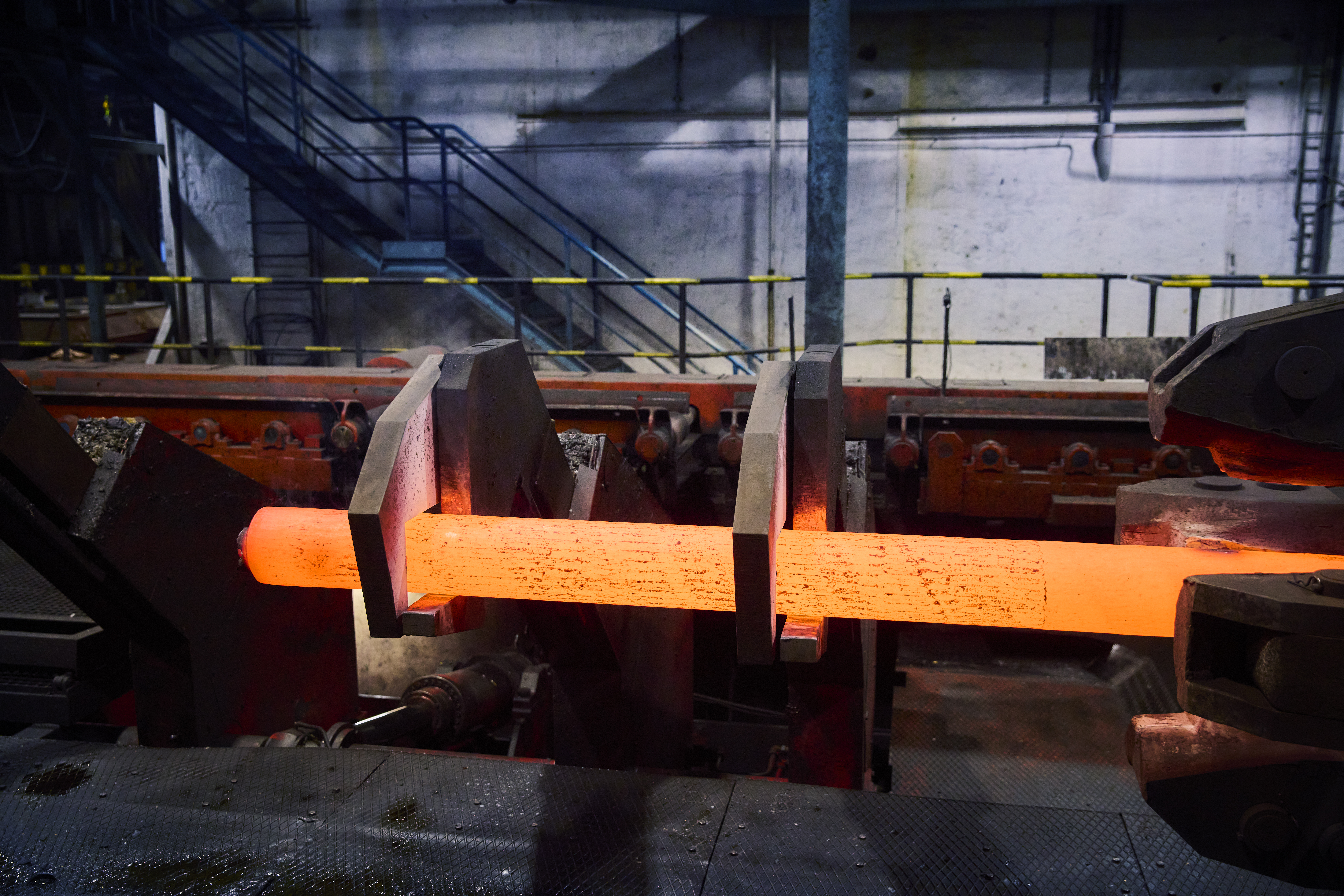 Smidesmaskin för stångämnen. Ämneslinjen vid Erasteel Kloster AB.