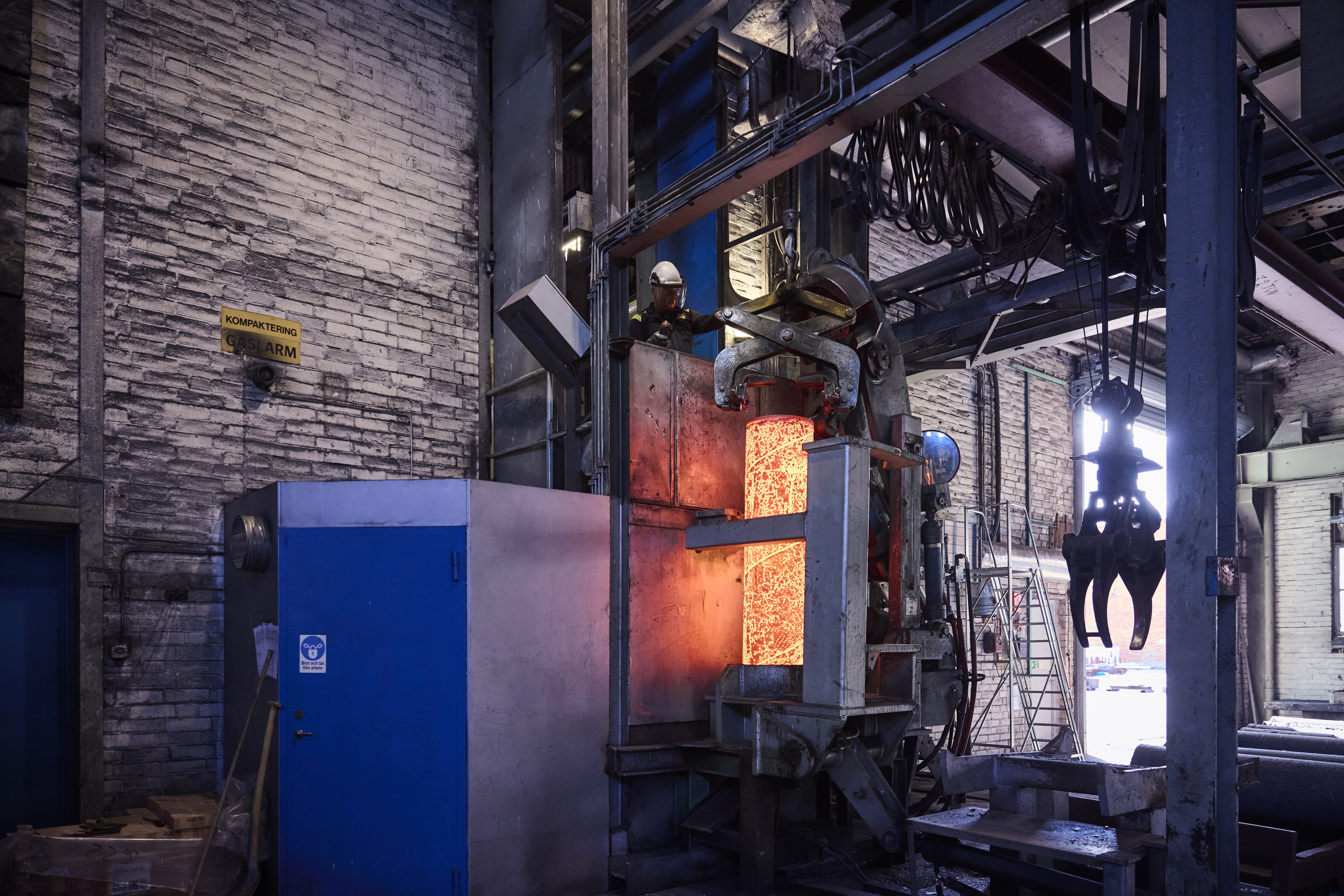 Stålämne skapat genom tillverkningsprocessen hetisostatisk pressning (HIP), där stålpulver kompakteras till ett fast ämne. Erasteel Kloster AB.