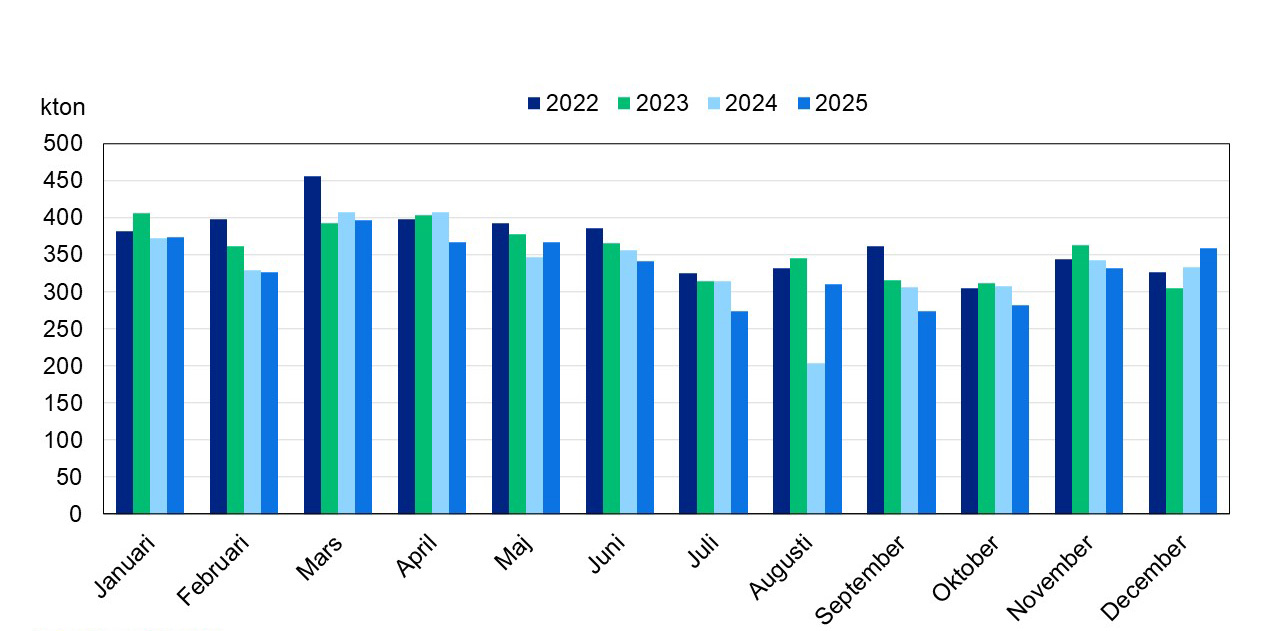 Under 2025 producerades i Sverige 3,998 miljoner ton råstål – en minskning med 0,7 procent jämfört med 2024.